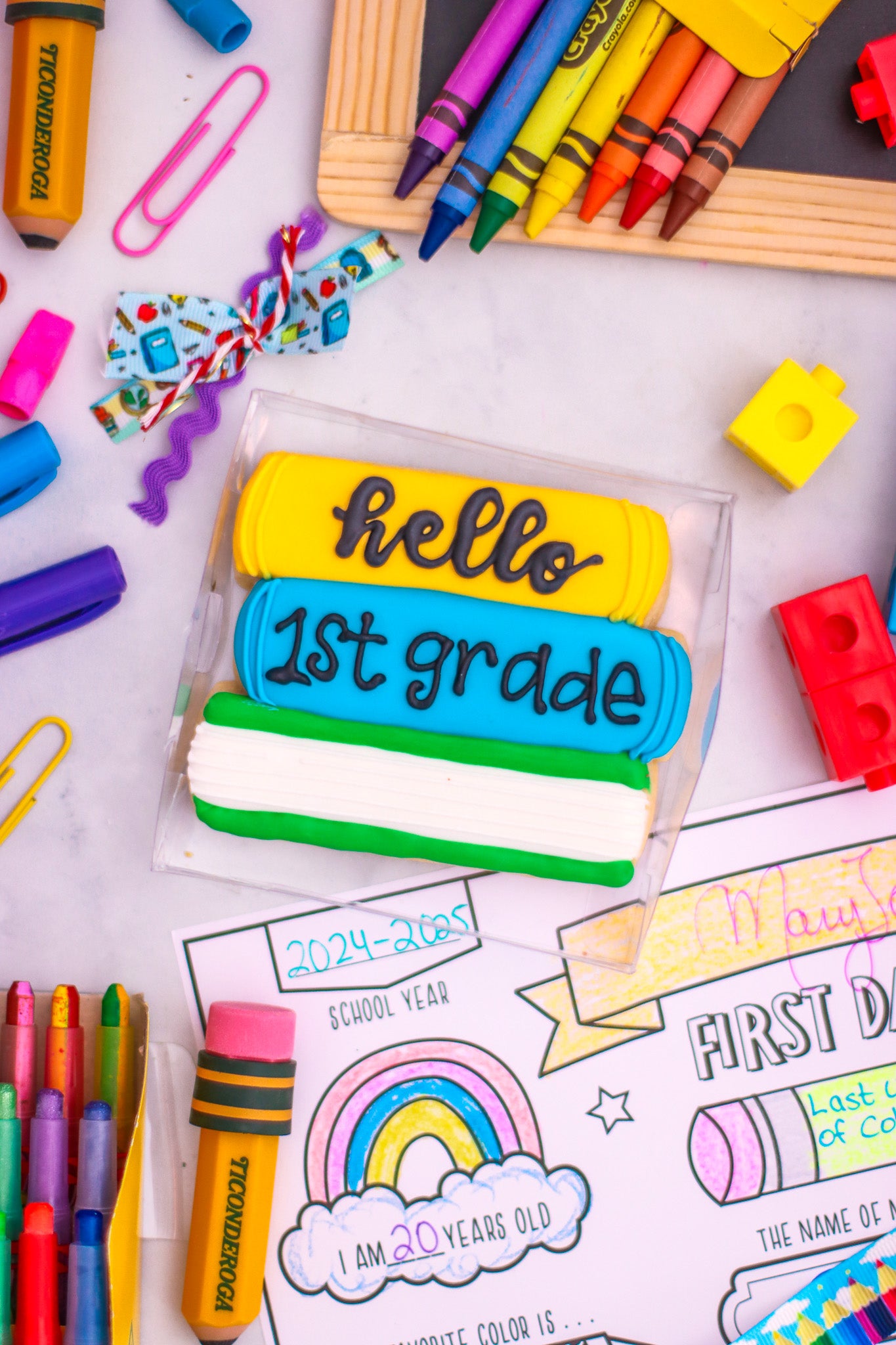 The backpacks are packed, the pencils are new, The first day of school brings excitement anew! But what’s that surprise by the door on display? A cookie that looks like a book—hooray! It’s sweet, it’s smart, and shaped just right, A tasty treat to end their night. A clever little way to say, “Happy first school day—hip hip hooray!”
